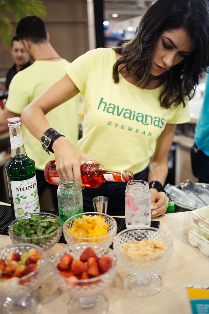 Montamos um bar personalizado com drinks alcoólicos e não alcoólicos para os clientes no stand da Sáfilo, além disso, cuidamos de buffet, casting, cenografia, segurança, limpeza e produção.